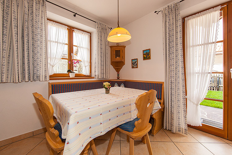 sich im Parterre mit möblierter Terrasse und Liegewiese und herrlichem Ausblick auf das Wettersteingebirge.