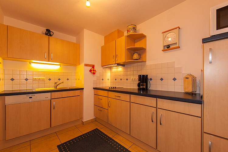 Sie ist aufgeteilt in Wohnzimmer, separater Küche (komplett ausgestattet mit Spülmaschine und Mikrowelle), zwei separaten Schlafzimmern, Dusche/WC und zusätzlichem Gäste-WC.